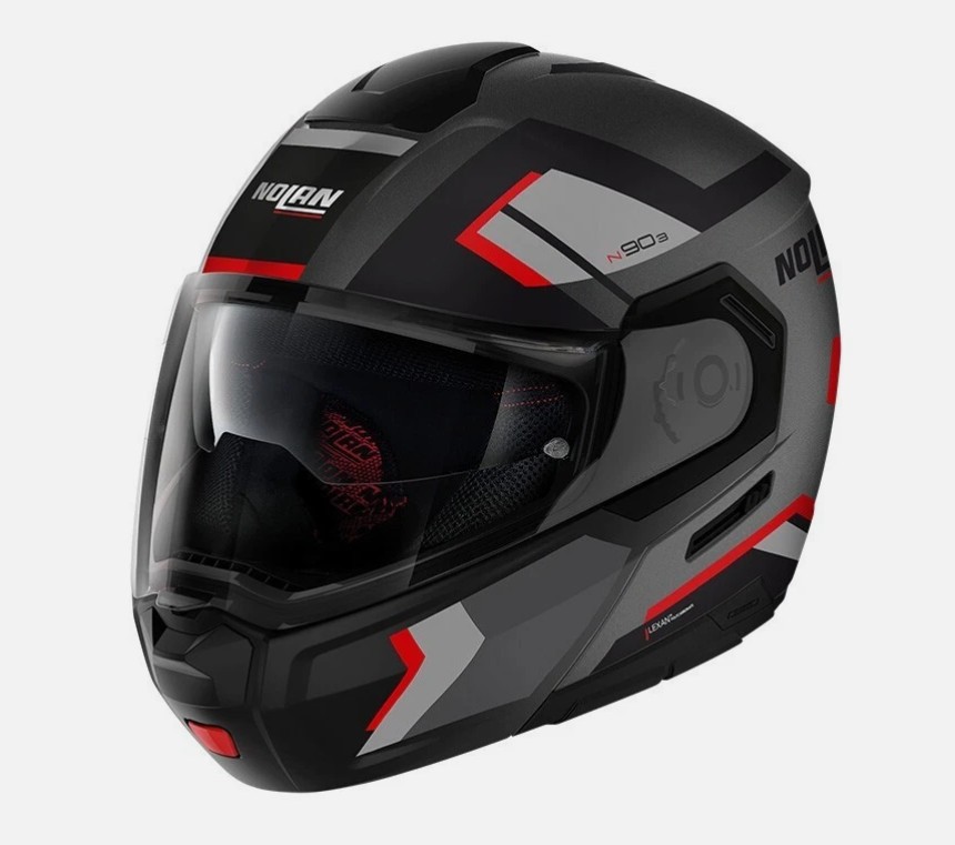 - Material y seguridad: La calota exterior está fabricada en policarbonato Lexan™, un material resistente a los impactos. Cuenta con la exigente homologación ECE 22-06, además de la doble homologación P/J que permite circular legalmente tanto con la mentonera cerrada como abierta.